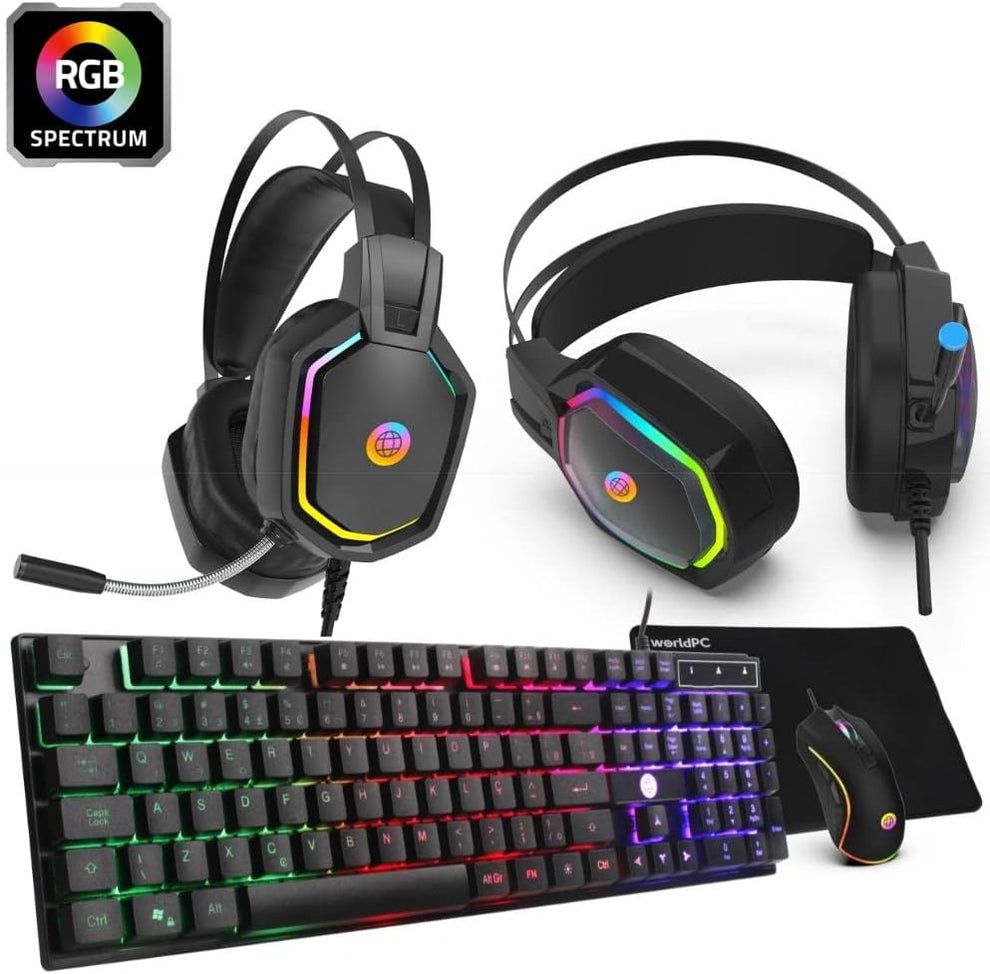 Kit Gamer RGB completo com mouse, teclado semi mecânico, headset e mousepad