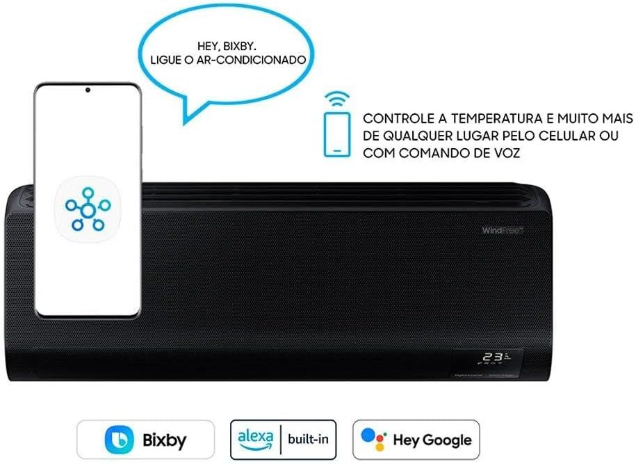O Ar-Condicionado Split Inverter 12000 BTUs Samsung WindFree Connect Black High Wall combina design moderno, tecnologia avançada e eficiência energética. Com acabamento em preto, ele traz sofisticação ao ambiente, enquanto o recurso SmartThings Energy permite monitorar e gerenciar o consumo de energia, promovendo economia. A conexão Wi-Fi via SmartThings oferece controle remoto pelo smartphone, possibilitando ajustes de temperatura, programação de horários e verificação do status do aparelho. Ideal para quem busca conforto, praticidade e inovação, este ar-condicionado é uma excelente escolha para climatização inteligente e personalizada.