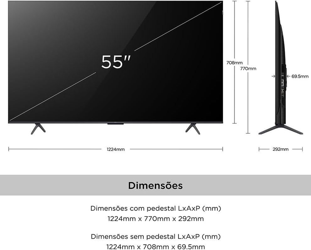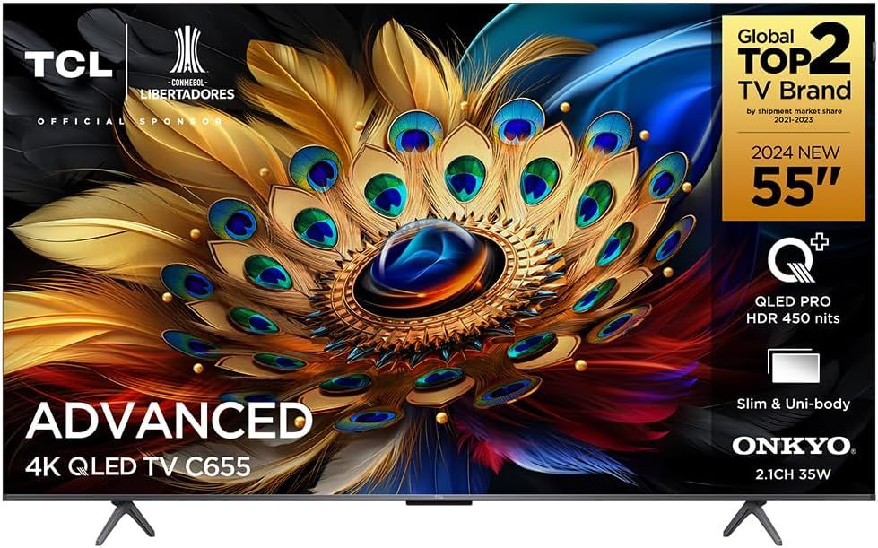 TCL QLED SMART TV 55β C655 4K UHD GOOGLE TV, Dolby Vision Atmos, DTS, HDR10+, Subwoofer, Dual band Wi-Fi and Bluetooth, 3 HDMI, HDMI 2.1 Remote voice control, Google Assistant, ALLM, VRR and borderless design.