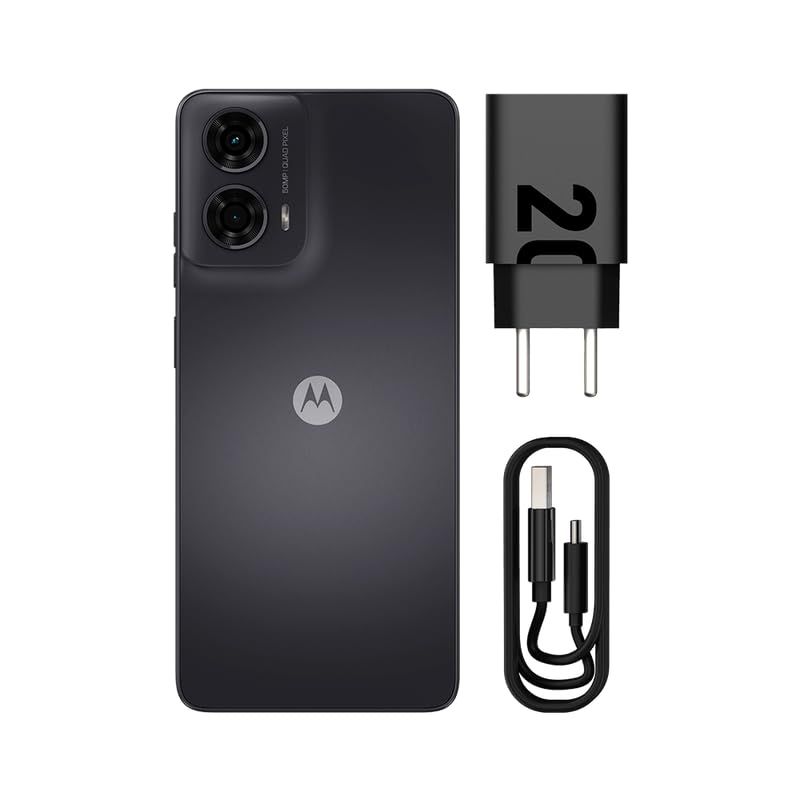 The moto g24 delivers the performance you’re looking for, with the style you deserve. Crafted from premium materials, it has a modern design that fits perfectly in your hand. And gain freedom with RAM Boost1 for extra processing power whenever you need it. Take beautifully detailed photos day or night with the 50MP camera and count on AI capabilities. Enjoy your favorite content on a 6.6″ notch-less display with a fast 90Hz refresh rate2. Listen to immersive sound from stereo speakers with Dolby Atmos®3. Count on a supercharged 5000mAh battery and TurboPowerTM charging so the fun never ends. The moto g24 delivers design and performance.