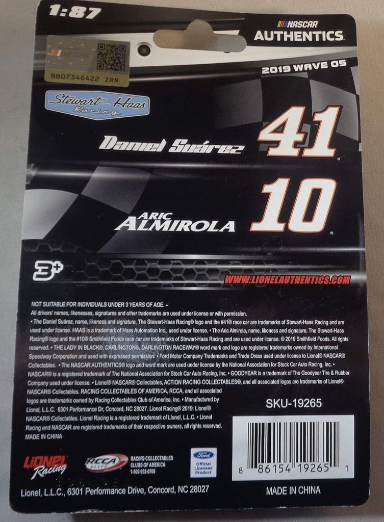 RCCA NASCAR Daniel Suarez & Aric Almirola 1:87 Die-Cast 2019 Wave 05