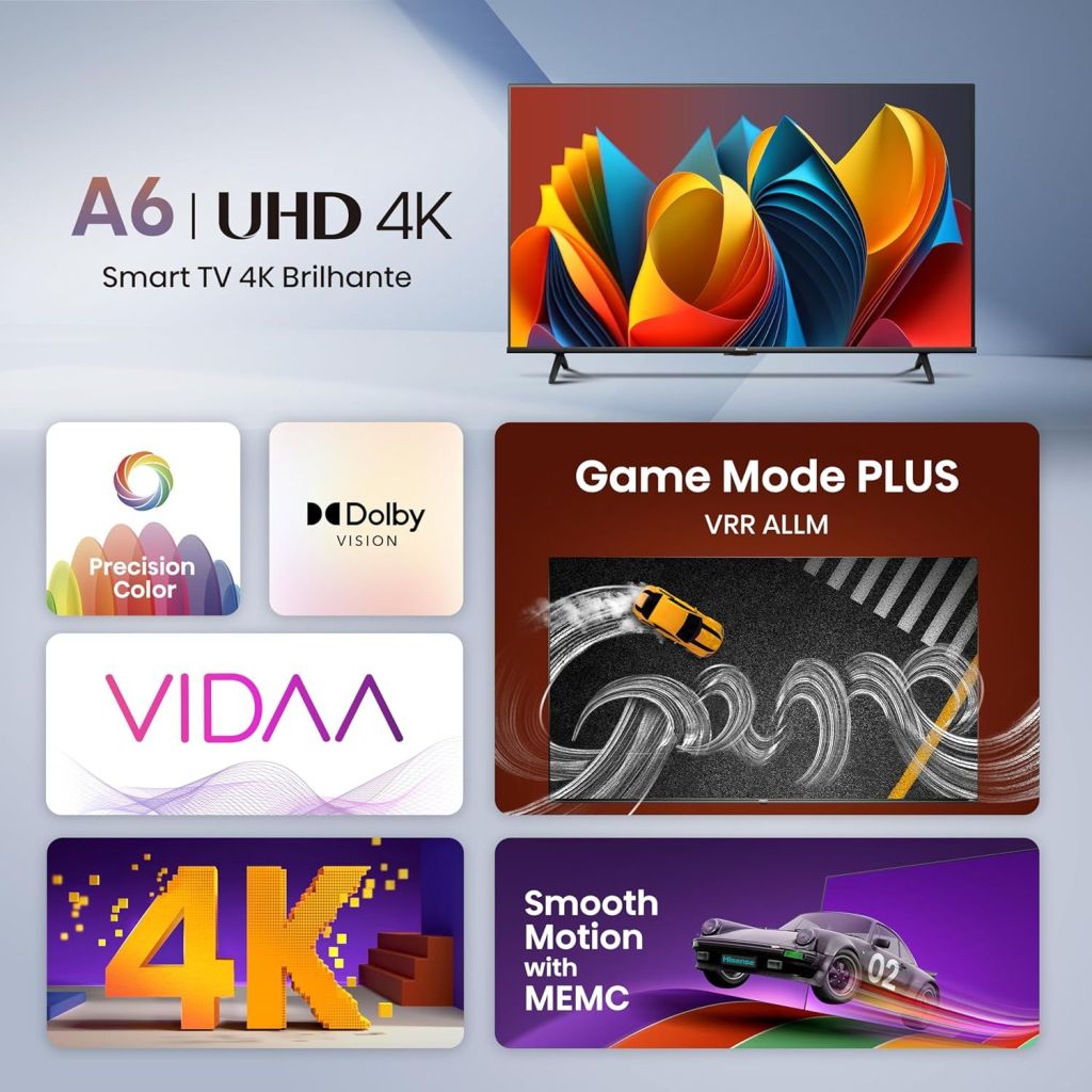 •[Smooth Motion] Hisense’s Smooth Motion gives you games with fluid movements and sharp transitions. Play games much more smoothly.