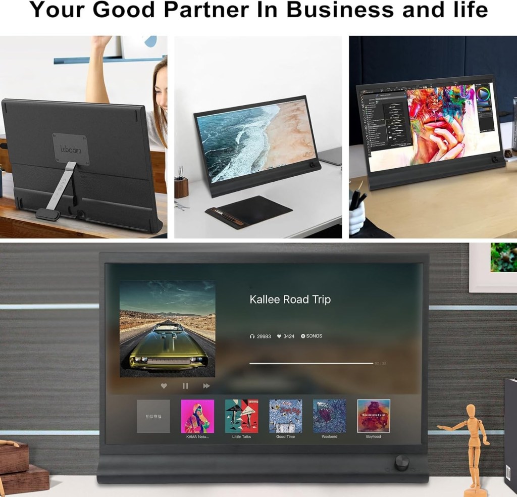 - 【820g Portable Display】This compact-sized monitor weighs only 820g, making it easy to carry and operate. Its stand design allows it to be placed stably on any desk for easy daily use. With its flexible and lightweight design, you can work from home or on the go.