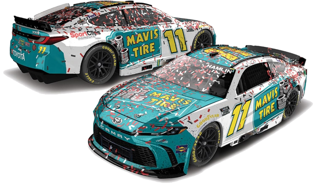 - SPECIFICATIONS: Racing Series: NASCAR Cup Series / Driver: Denny Hamlin / Car No.: 11 / Team: Joe Gibbs Racing / Sponsor: Mavis Tire / Car Make: Toyota / Car Model: Camry / Scale: 1:24 / Finish: Standard – Race Win / Type: ARC / Mold: Hood Open