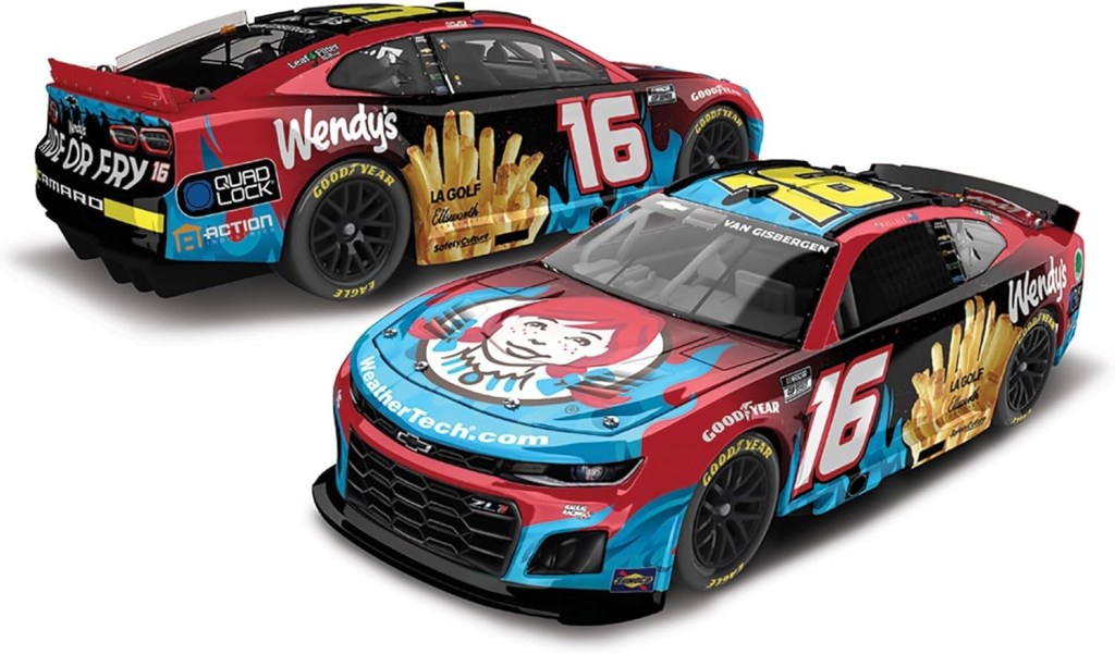 - SPECIFICATIONS: Racing Series: NASCAR Cup Series / Driver: Shane Van Gisbergen / Car No: 16 / Team: Kaulig Racing / Sponsor: Wendy’s / Car Make: Chevrolet / Car Model: Camaro / Scale: 1:24 / Finish: Standard / Type: ARC / Mold: Hood Open / Age: 21 Years and Up