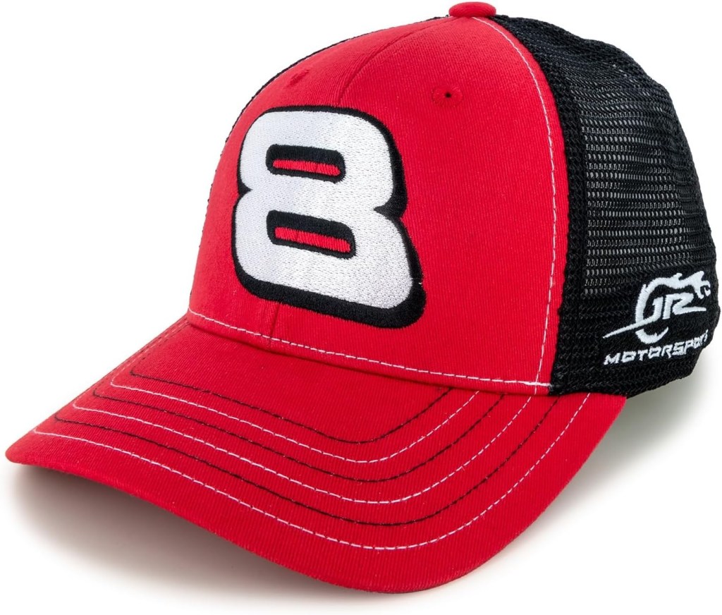 - This Dale Earnhardt Jr hat features his car number #8 on the crown, along with the team and sponsor logo on the sides, and his signature on the back.