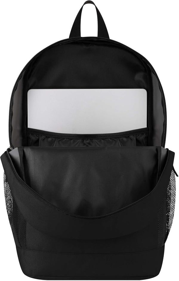 •Bold logo and solid design: This backpack features a logo display on the front pocket